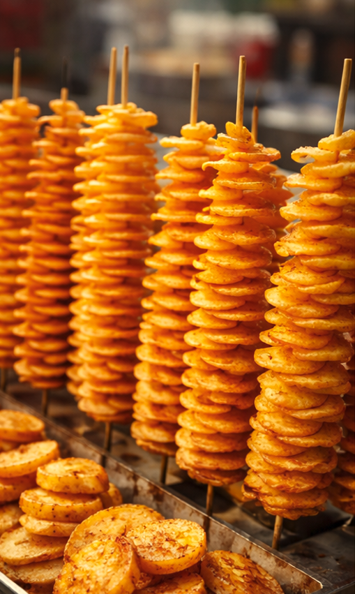 Knusprige Kartoffelspiralen, im Pflanzenschmalze zu knackender Vollkommenheit gedreht,